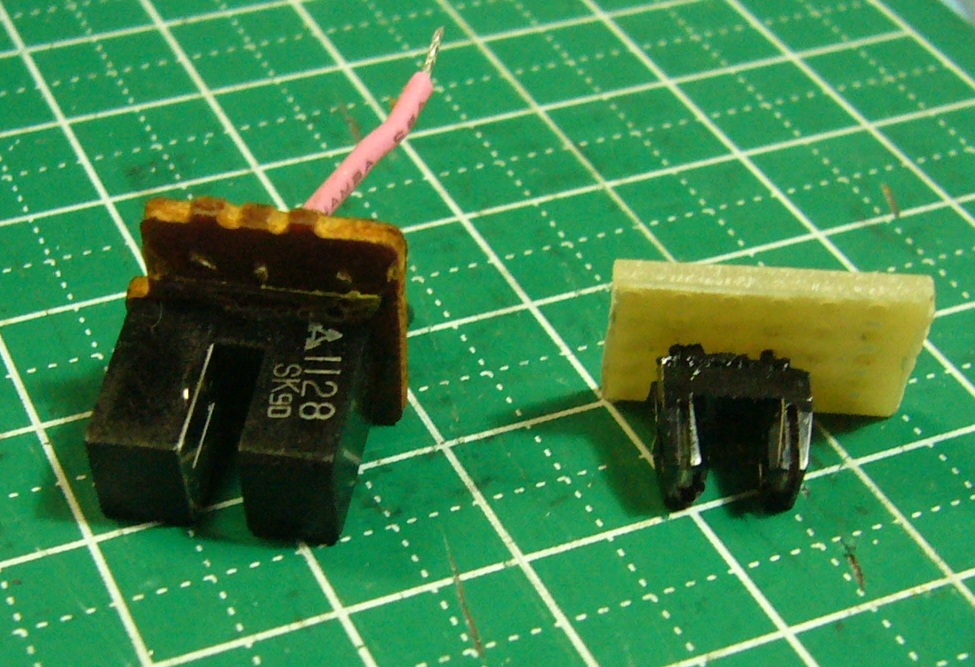 そこで、ギア間の隙間に0.55mmの針金を通せること確認し、0.6mmの穴を4個穿った。この穴にステンレスの針金を通し、ギアの割れ目を縛った。 ゴムベルトは、32mmφのOリングを細く切って代用した。 これで使えるようになる筈だったが、この機は、はずれくじで、他の故障も抱えていた。